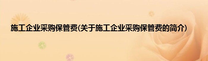 施工企业采购保管费(关于施工企业采购保管费的简介)