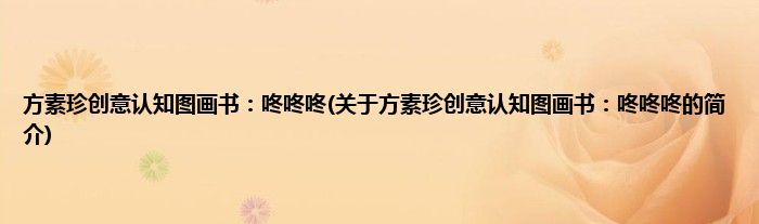 本文关于方素珍创意认知图画书:咚咚咚的简介就讲解完毕,希望对大家有所帮助。