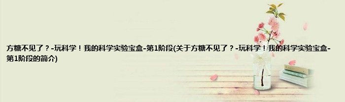 本文关于方糖不见了?-玩科学!我的科学实验宝盒-第1阶段的简介就讲解完毕,希望对大家有所帮助。