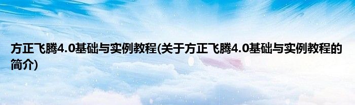 大家好,方正飞腾4.0基础与实例教程,关于方正飞腾4.0基础与实例教程的简介很多人还不知道,现在让我们一起来看看吧!