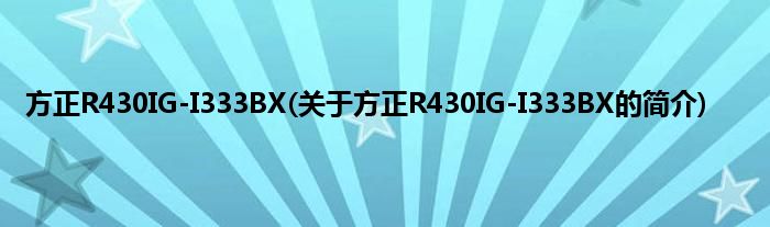 本文关于方正R430IG-I333BX的简介就讲解完毕,希望对大家有所帮助。