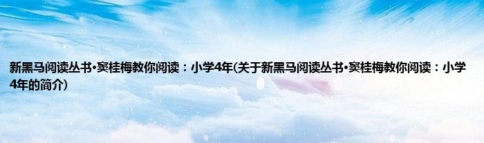 本文关于新黑马阅读丛书·窦桂梅教你阅读:小学4年的简介就讲解完毕,希望对大家有所帮助。