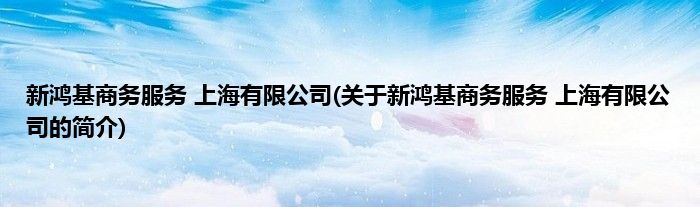 大家好,新鸿基商务服务 上海有限公司,关于新鸿基商务服务 上海有限公司的简介很多人还不知道,现在让我们一起来看看吧!