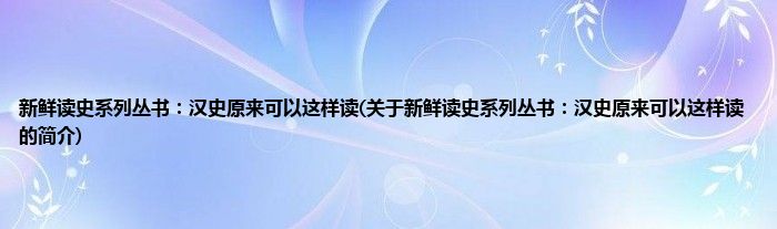 本文关于新鲜读史系列丛书:汉史原来可以这样读的简介就讲解完毕,希望对大家有所帮助。