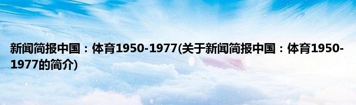 本文关于新闻简报中国:体育1950-1977的简介就讲解完毕,希望对大家有所帮助。