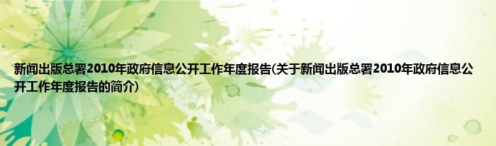 本文关于新闻出版总署2010年政府信息公开工作年度报告的简介就讲解完毕,希望对大家有所帮助。