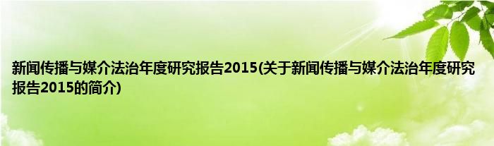 新闻传播与媒介法治年度研究报告2015(关于新闻传播与媒介法治年度研究报告2015的简介)