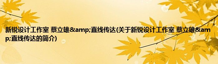 大家好,新锐设计工作室 蔡立雄&直线传达,关于新锐设计工作室 蔡立雄&直线传达的简介很多人还不知道,现在让我们一起来看看吧!