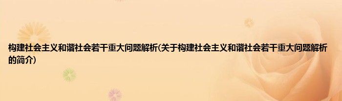 本文关于构建社会主义和谐社会若干重大问题解析的简介就讲解完毕,希望对大家有所帮助。