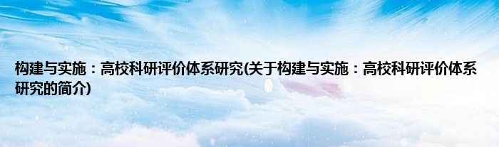 构建与实施:高校科研评价体系研究(关于构建与实施:高校科研评价体系研究的简介)