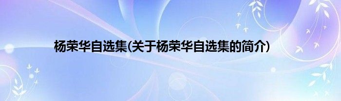 本文关于杨荣华自选集的简介就讲解完毕,希望对大家有所帮助。
