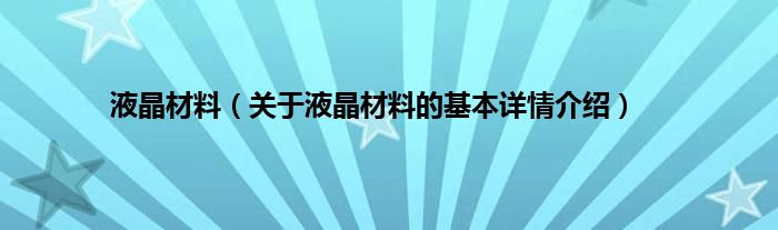 本文关于液晶材料的基本详情介绍就讲解完毕,希望对大家有所帮助。