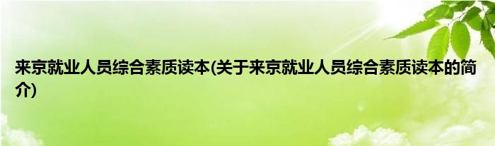 本文关于来京就业人员综合素质读本的简介就讲解完毕,希望对大家有所帮助。