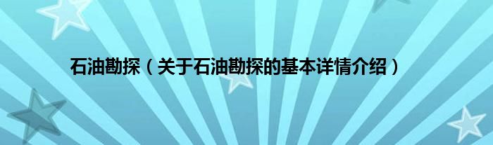 本文关于石油勘探的基本详情介绍就讲解完毕,希望对大家有所帮助。
