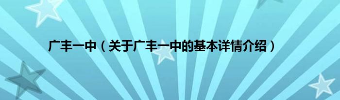 本文关于广丰一中的基本详情介绍就讲解完毕,希望对大家有所帮助。
