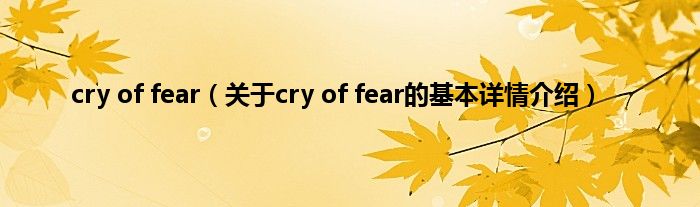 本文关于cry of fear的基本详情介绍就讲解完毕,希望对大家有所帮助。
