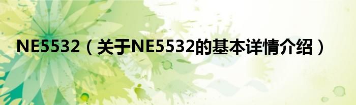 本文关于NE5532的基本详情介绍就讲解完毕,希望对大家有所帮助。