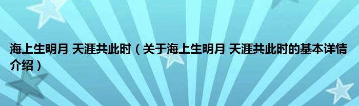 本文关于海上生明月 天涯共此时的基本详情介绍就讲解完毕,希望对大家有所帮助。