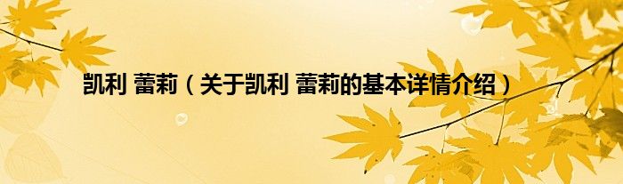 本文关于凯利 蕾莉的基本详情介绍就讲解完毕,希望对大家有所帮助。