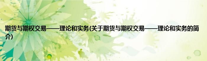 大家好,期货与期权交易——理论和实务,关于期货与期权交易——理论和实务的简介很多人还不知道,现在让我们一起来看看吧!