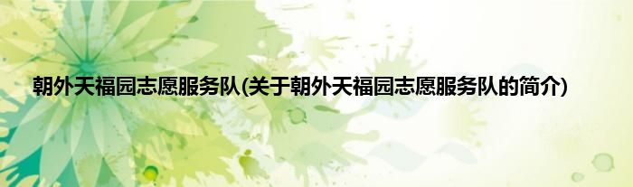 朝外天福园志愿服务队(关于朝外天福园志愿服务队的简介)