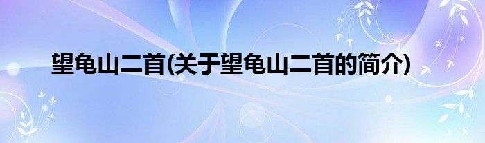 本文关于望龟山二首的简介就讲解完毕,希望对大家有所帮助。