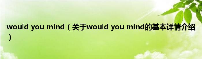 本文关于would you mind的基本详情介绍就讲解完毕,希望对大家有所帮助。