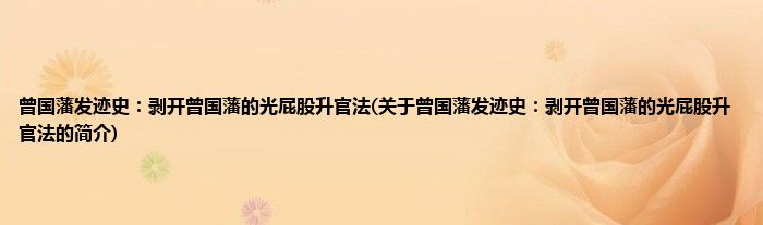 本文关于曾国藩发迹史:剥开曾国藩的光屁股升官法的简介就讲解完毕,希望对大家有所帮助。
