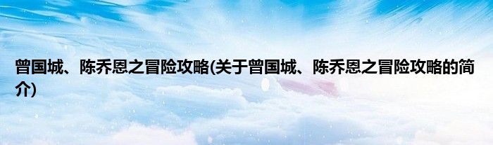 本文关于曾国城、陈乔恩之冒险攻略的简介就讲解完毕,希望对大家有所帮助。