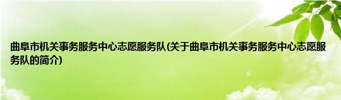 1、 曲阜市机关事务服务中心志愿服务队是由曲阜市志愿者协会领导下的志愿团体。
