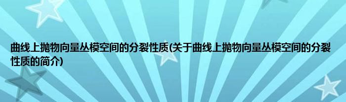 本文关于曲线上抛物向量丛模空间的分裂性质的简介就讲解完毕,希望对大家有所帮助。