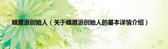 峨眉派创始人(关于峨眉派创始人的基本详情介绍)