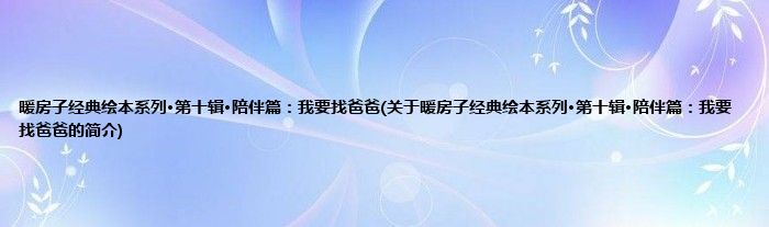 本文关于暖房子经典绘本系列·第十辑·陪伴篇:我要找爸爸的简介就讲解完毕,希望对大家有所帮助。