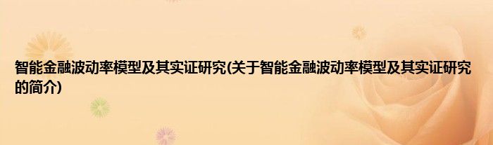大家好,智能金融波动率模型及其实证研究,关于智能金融波动率模型及其实证研究的简介很多人还不知道,现在让我们一起来看看吧!