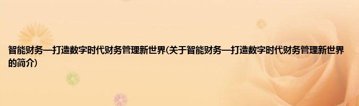本文关于智能财务—打造数字时代财务管理新世界的简介就讲解完毕,希望对大家有所帮助。