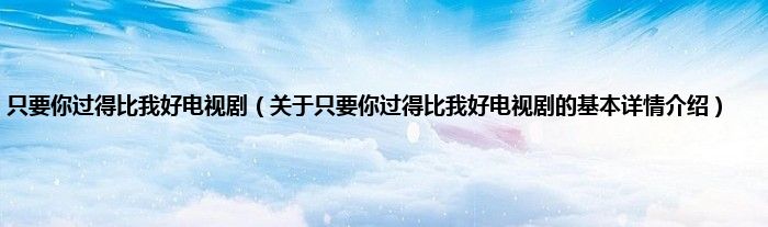 本文关于只要你过得比我好电视剧的基本详情介绍就讲解完毕,希望对大家有所帮助。