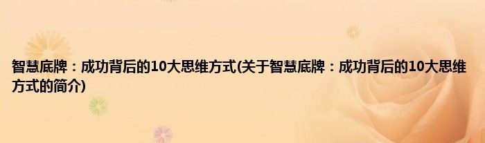 智慧底牌:成功背后的10大思维方式(关于智慧底牌:成功背后的10大思维方式的简介)