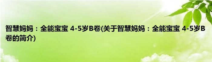 大家好,智慧妈妈:全能宝宝 4-5岁B卷,关于智慧妈妈:全能宝宝 4-5岁B卷的简介很多人还不知道,现在让我们一起来看看吧!