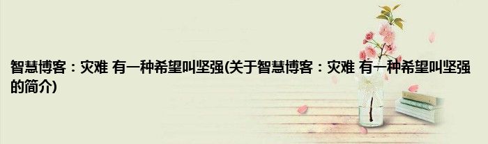 大家好,智慧博客:灾难,有一种希望叫坚强,关于智慧博客:灾难,有一种希望叫坚强的简介很多人还不知道,现在让我们一起来看看吧!