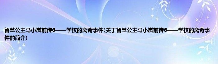 本文关于智慧公主马小岚前传6——学校的离奇事件的简介就讲解完毕,希望对大家有所帮助。