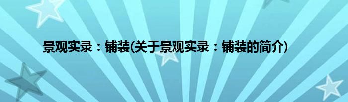1、 《景观实录:铺装》是2016年辽宁科学技术出版社出版的图书。
