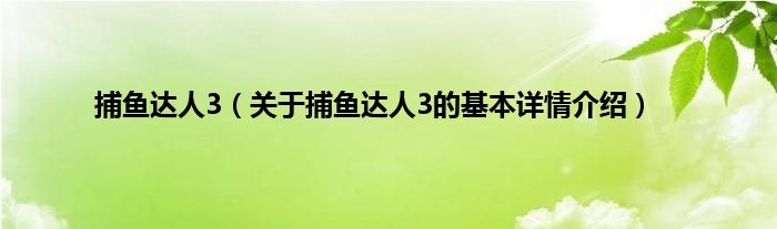 本文关于捕鱼达人3的基本详情介绍就讲解完毕,希望对大家有所帮助。