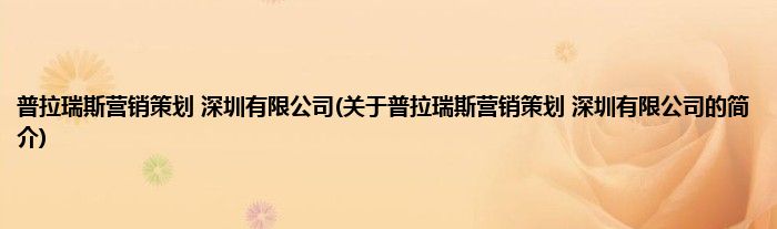 本文关于普拉瑞斯营销策划 深圳有限公司的简介就讲解完毕,希望对大家有所帮助。