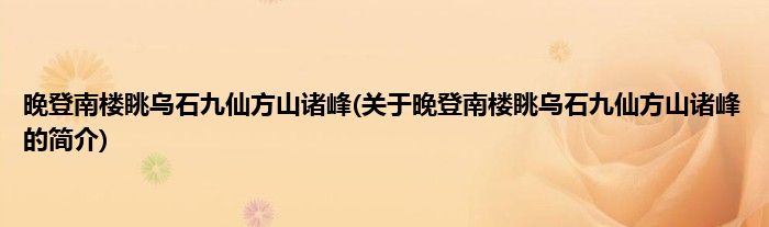 本文关于晚登南楼眺乌石九仙方山诸峰的简介就讲解完毕,希望对大家有所帮助。
