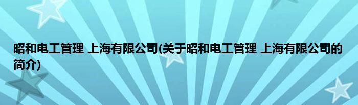 本文关于昭和电工管理 上海有限公司的简介就讲解完毕,希望对大家有所帮助。