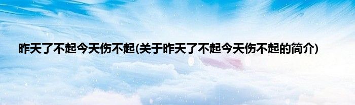 大家好,昨天了不起今天伤不起,关于昨天了不起今天伤不起的简介很多人还不知道,现在让我们一起来看看吧!