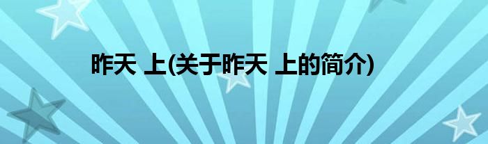 大家好,昨天 上,关于昨天 上的简介很多人还不知道,现在让我们一起来看看吧!