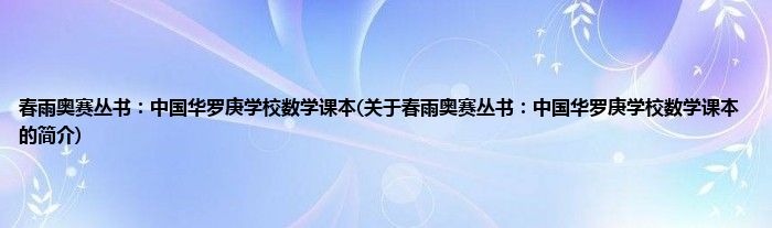 本文关于春雨奥赛丛书:中国华罗庚学校数学课本的简介就讲解完毕,希望对大家有所帮助。