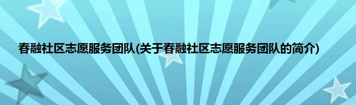本文关于春融社区志愿服务团队的简介就讲解完毕,希望对大家有所帮助。