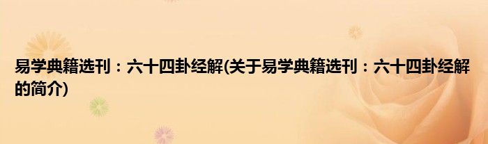 本文关于易学典籍选刊:六十四卦经解的简介就讲解完毕,希望对大家有所帮助。